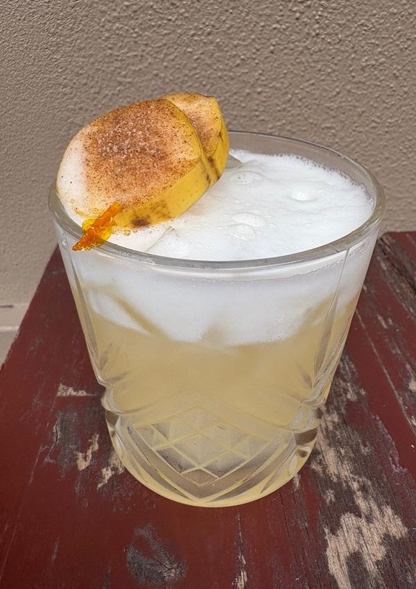 Angostura 7YO Butterfly Rum, with chai, falernum spice, pineapple & lime shaken with coconut cream tall over ice